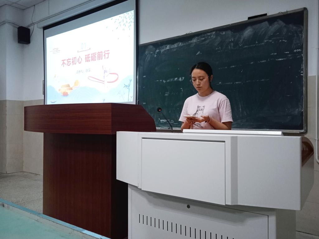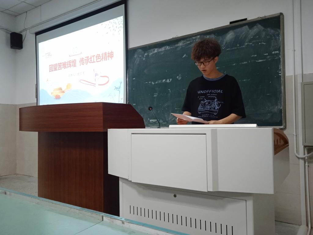徐露以“不忘初心,砥砺前行”为题,讲述波澜壮阔的百年党史,号召同学们作为新时代的青年,应当树立远大理想,明确人生目标,磨炼本领,砥砺无悔青春。桂万里以“回望苦难辉煌,传承红色精神”为题,带领班级同学回顾党的奋斗、发展和辉煌历程,认识党的正确领导的重要性,坚持中国特色社会主义道路自信、理论自信、制度自信、文化自信。王蕾以“四海先锋赵一曼”为题,结合自身经历与感悟,表达了对英雄人物赵一曼的崇敬之情。张超以“百年复兴中国梦”为题,回顾历史,展望未来,号召同学们做时代的参与者、践行者,为实现伟大复兴中国梦贡献青春力量。陈仁杰以“百年奋斗中的理论与实践”为题,提醒同学们要通过党史学习教育,做到学史明理、学史增信、学史崇德、学史力行,读懂党史中的理论与实践,激发新时代奋斗前行的内生动力。