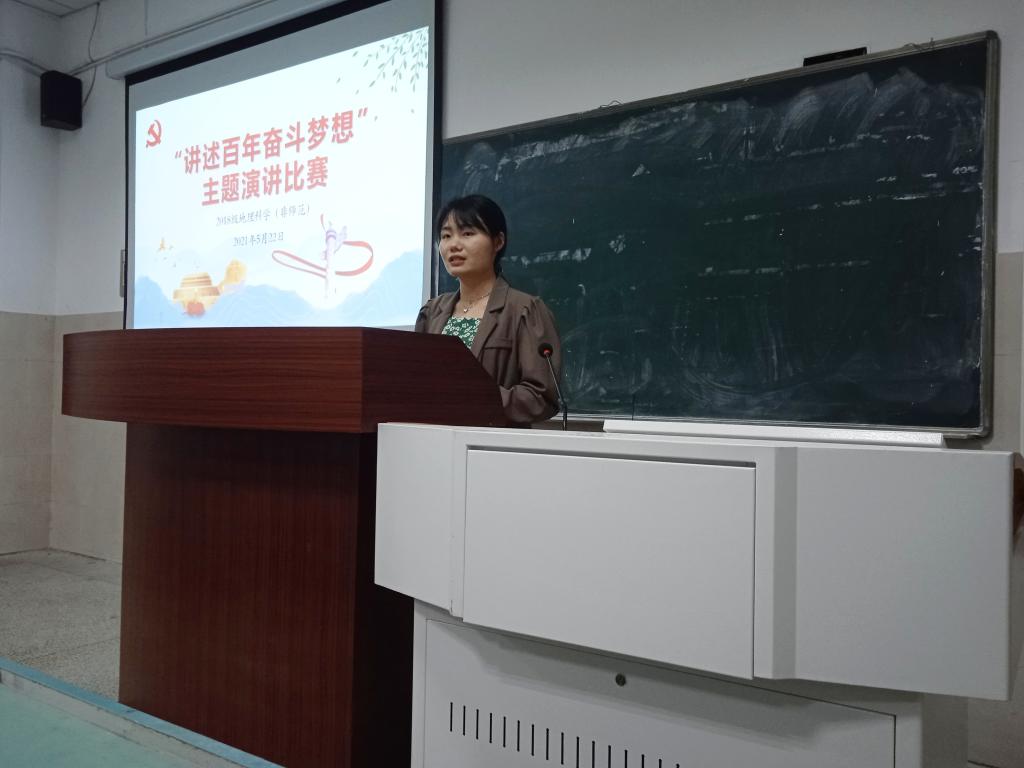 本网讯(地旅学院 李娜)为深入学习百年党史,致敬英雄人物,2021年5月22日晚上七点半,2018级地理科学(非师范)专业“讲述百年奋斗梦想”主题演讲比赛在行知楼4号楼301A教室顺利举行。本次活动由团支书韩雨彤主持,辅导员张慧及2018级地理科学(非师范)专业全体同学参加。
