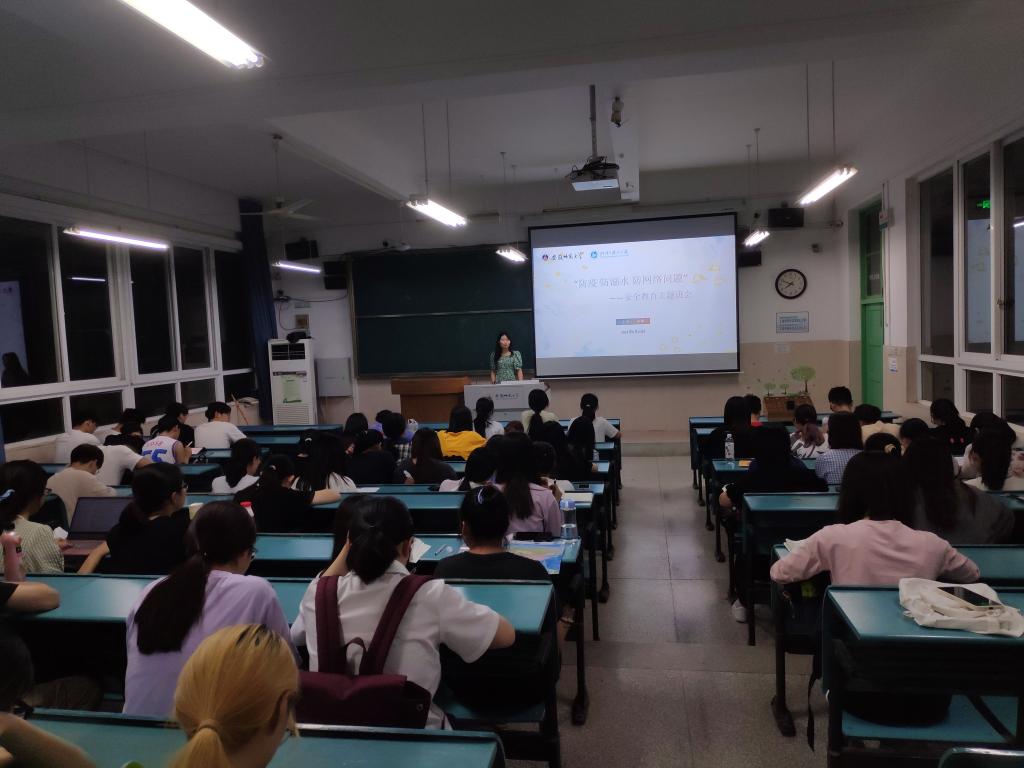 张慧提醒同学们要重视疫情防控,及时了解疫情中高风险地区,非必要不外出,同时做好个人防护工作。她还说明了疫苗接种的具体安排,提醒暑期在家接种的同学妥善保管好接种单。张慧结合案例强调了一系列寝室安全问题的防范,提醒同学们严格遵守“四个严禁”,不做违反学生手册及寝室文明公约的行为,防电信诈骗、防交通事故、防贵重物品丢失同样很重要,同学们应提高财产安全防范意识。此外,张慧以前期防溺水线上学习引入,强调了夏季是溺水事件高发期,同学们应牢记防溺水“六不准”,增强安全意识,更安全、更快乐地进行游泳或去水上乐园游玩。张慧还告诫大家要遵守网络相关法则,不轻信网友、不泄露自己的个人信息,更不能随意在网络上发表不合时宜的言论,多学习党史、时政,多传播正能量,并再次向同学们推荐了《觉醒年代》、《长征》等影视作品,引导大家在观中学、在学中悟。