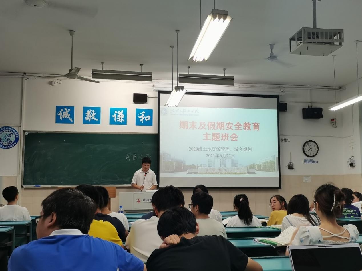 本网讯(地旅学院 刘少杰 陆峻然)为增强同学们的安全防范意识,提高同学们的安全防范能力,必赢76net线路官网2020级城乡规划、20级土地资源管理于2021年6月27日晚上在行知楼开展期末及假期安全教育主题班会,会议由辅导员刘少杰主持, 2020级城乡规划、20级土地资源管理全体学生参与。
