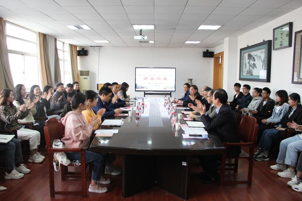 签约仪式结束后, 安徽师范大学教育基金会2021年97旅本奖助学金颁发仪式在地旅学院行政楼三楼会议室举行。乔静对与会的领导嘉宾表示热烈欢迎,并介绍了97旅本奖助学金的设立背景和发展历程。随后,贡植斌宣读颁发决定以及获得本年度97旅本奖助学金的人员名单。颁奖仪式环节,1997级旅游管理专业本科班毕业校友代表与贡植斌、项家春分别为丁雅欣、冯安兰等12名获奖受助同学颁发获奖受助证书。
