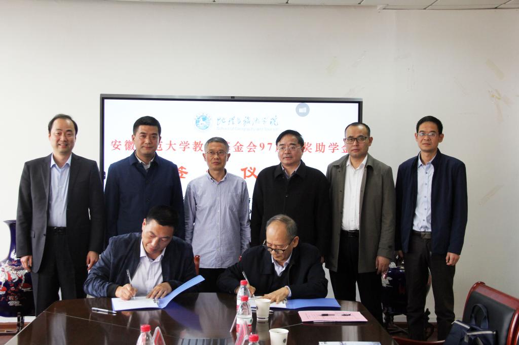 随后,项目共同发起人、原1997级旅游管理专业本科班同学、安徽商贸职业技术学院旅游系负责人张启全与贡植斌代表双方共同签署了捐资助学协议书。