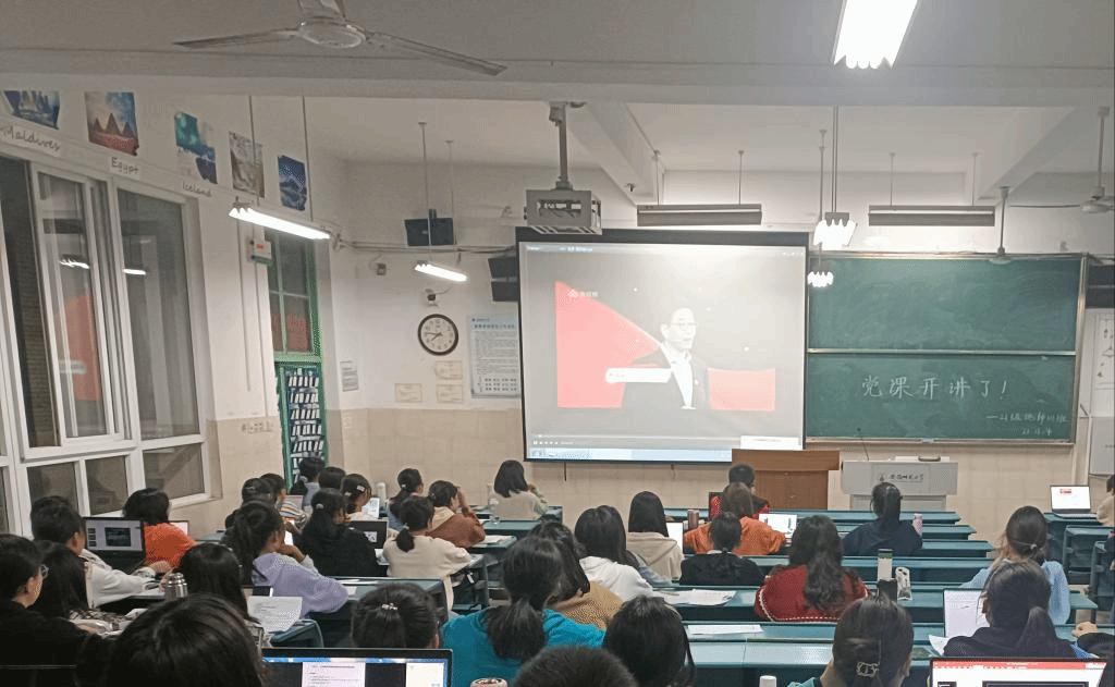 学习过程中,同学们积极做好笔记,聚精会神地听杨凤城教授讲党的故事。活动最后,同学们纷纷在班级文化墙写下感悟:“百年之前,一艘小小的红船承载着希望的种子在嘉兴南湖上飘摇;百年之后,我辈乘着巍巍的时代巨轮在世界的浪潮中扬帆远航。当下的我们正身处于两个一百年的历史交汇口,机遇和挑战错综复杂,但,时代能造梦,我们就敢圆梦。”