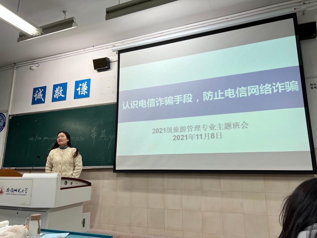 本网讯(必赢76net线路官网)为加强当代大学生的网络安全意识、识别网络诈骗能力,有效防止网络诈骗,11月8日,21级城乡规划、旅游管理专业辅导员韦银艳组织两专业分别开展防止电信网络诈骗主题班会。
