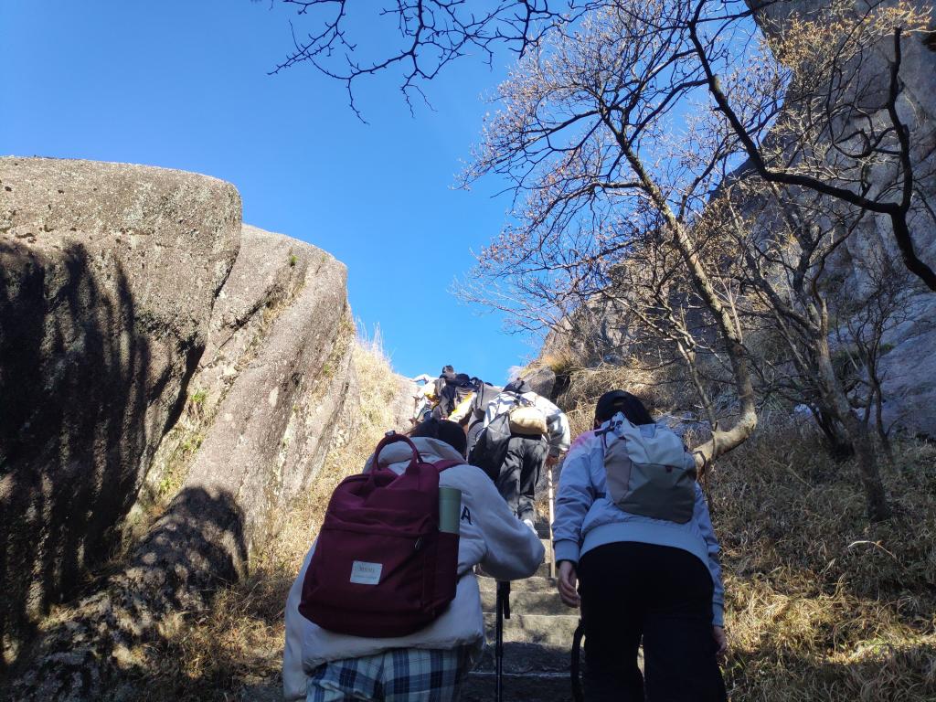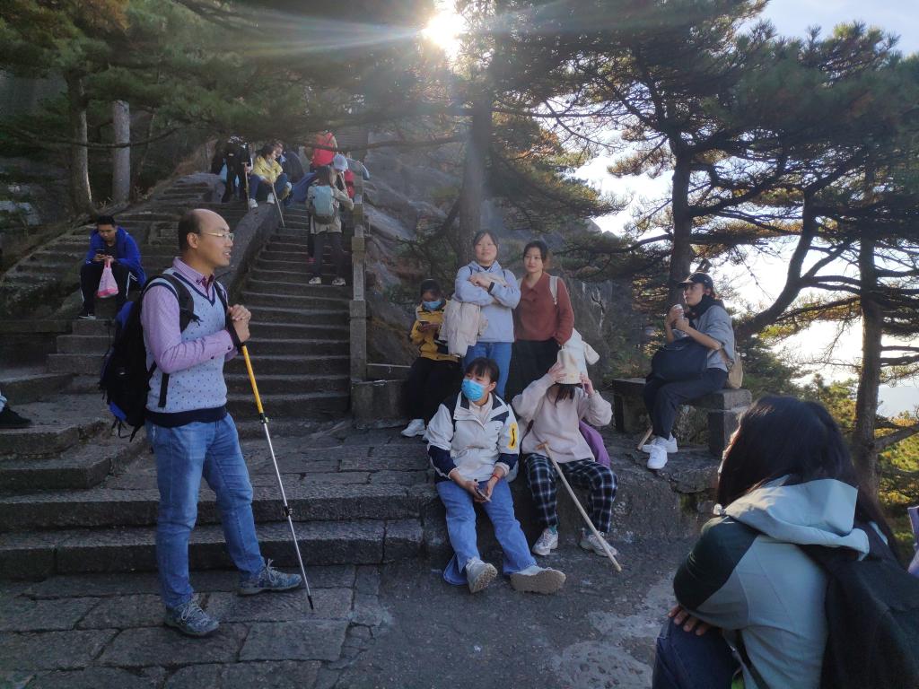 实习后两日,师生一行从后山云谷上山考察黄山地质地貌等自然地理概况,望西海峡谷梦笔生花,览日出日落气象景观,登百步云梯莲花峰顶。一路游学,同学们直观感受到构造运动造就沧海桑田的巨大变迁,观察花岗岩风化塑造的奇石怪景,探索辨析黄山地区地貌成因,深入理解了相关自然地理学概念,锻炼了野外实习的基本技能。