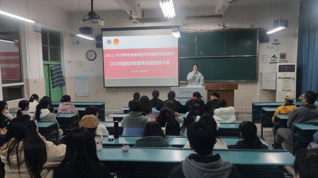 本网讯 (地旅学院 舒玉茹)为加强班级团支部建设,回顾2021-2022学年团支部的工作成果,总结团支部工作经验。11月24日晚,2020级旅游管理专业召开团支部大会。本次会议由团支书徐雨菲主持召开,2020级旅游管理专业全体同学参与。