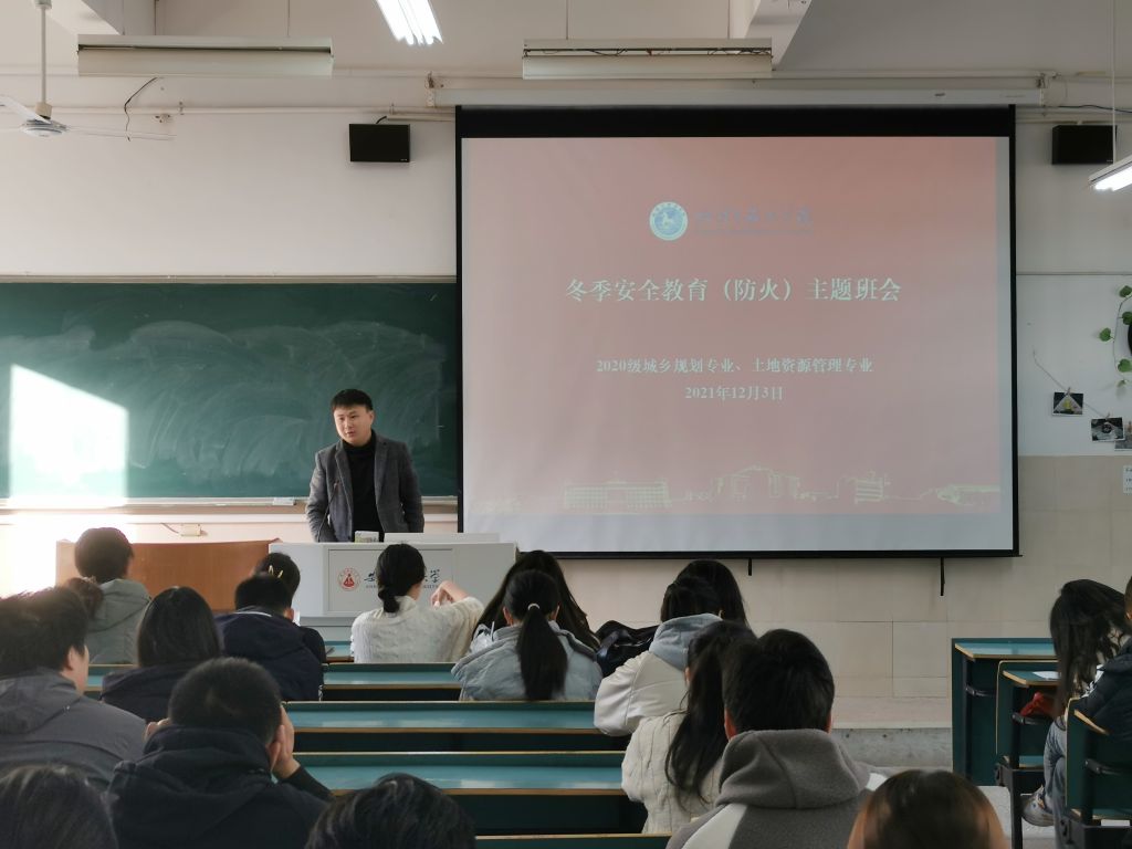 本网讯 (必赢76net线路官网 刘少杰 张楠)为加强安全教育,提高学生安全防范意识,12月3日上午,2020级城乡规划和土地资源管理专业召开冬季安全(防火)教育主题班会。本次主题班会由辅导员刘少杰主持,2020级城乡规划和土地资源管理专业全体学生参与。