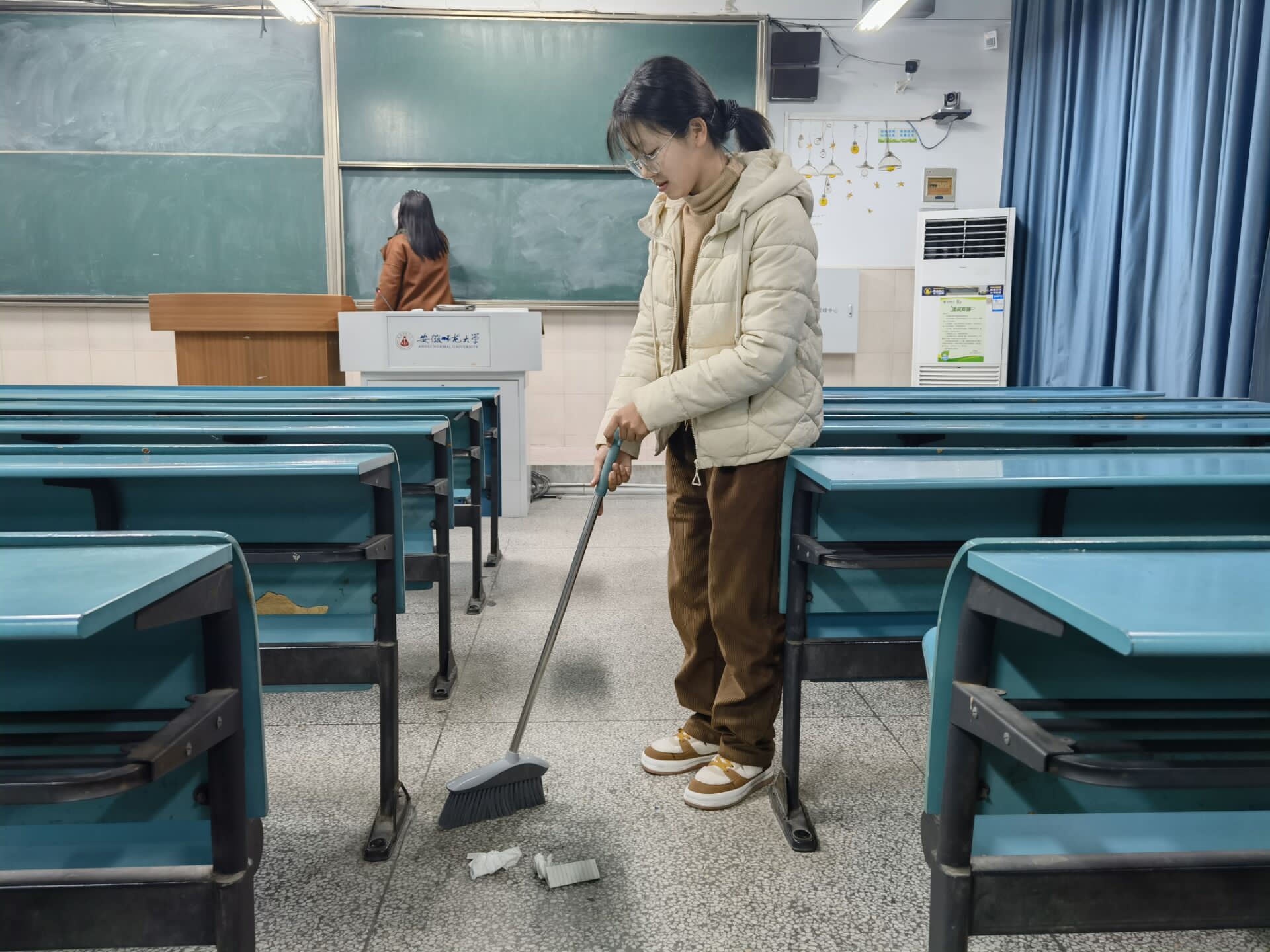 下午三点,同学们准时到达地旅学院行政楼、行知楼教室开展打扫卫生以及办公室整理等志愿服务活动。每位同学根据各自的任务领取不同的卫生工具,翁丹煜、栾晴等同学负责教师办公室和会议室的整理,帮助老师整理文件、打扫会议室;林沂钲、刘雨露等同学负责班级教室的卫生清扫;朱雅洁、李子贤也督促每位同学按规整理内务,打扫寝室。同学们不怕脏不怕累,服从调遣,合理分工,积极对待各自的任务,顺利完成了本次志愿服务活动。活动结束后,同学们纷纷表示今后将会积极参与此类活动,并带动更多人加入到志愿者活动中,让同学们树立良好的榜样意识,为建设美丽校园贡献力量。