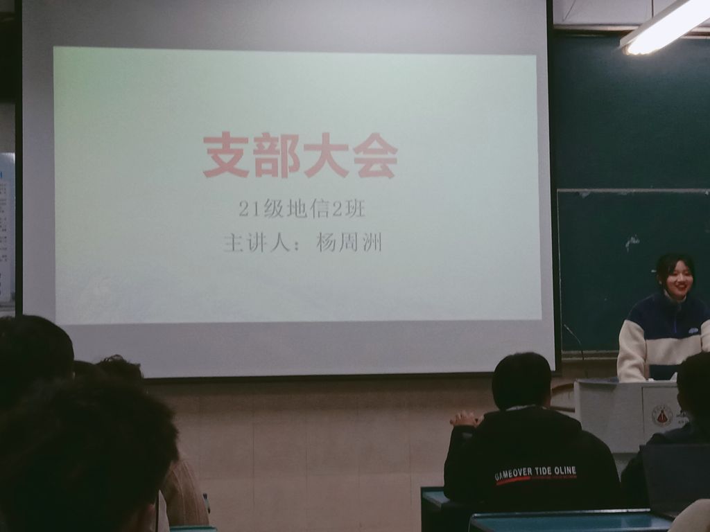 本网讯(地旅学院 胡珊珊)2021年11月28日晚19:30,2021级地理信息科学2班于行知楼4号楼303室开展团支部大会,会议由团支书杨周洲主持。