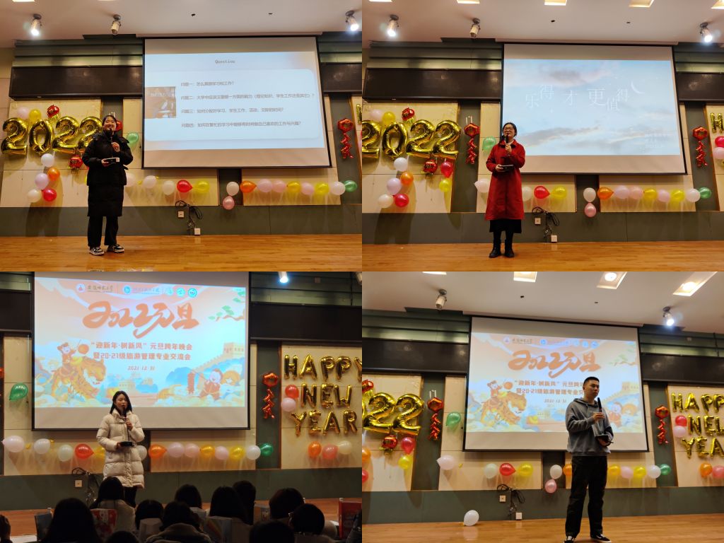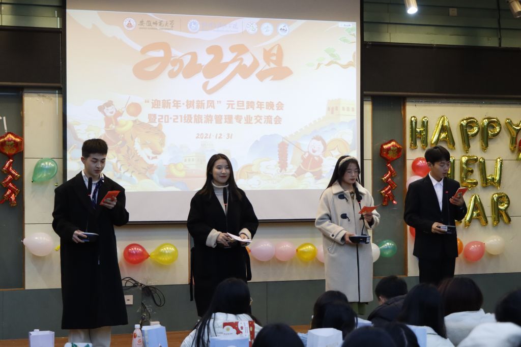 本网讯(地旅学院 舒玉茹 陈谊)为欢庆元旦,丰富学生课余生活,促进旅游管理专业新老生的相互交流,12月31日晚,必赢76net线路官网20级旅游管理、21级旅游管理携手举办“迎新年·树新风”元旦跨年晚会暨学习交流分享会。此次晚会由两个年级的班委共同策划准备,相关专业辅导员韦银艳、赵佳慧、吴文涵、刘少杰等老师受邀参加,和同学们共同庆元旦,迎新年。