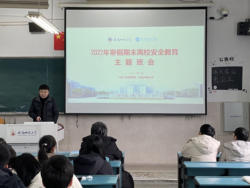 本网讯 (地旅学院 耿艺榕 刘少杰) 为做好期末及寒假安全教育,增强学生安全防范意识,1月6日上午,20级城乡规划和20级土地资源管理专业召开寒假离校安全教育主题班会,会议由辅导员刘少杰主持,20级城乡规划和20级土地资源管理所有学生参与。