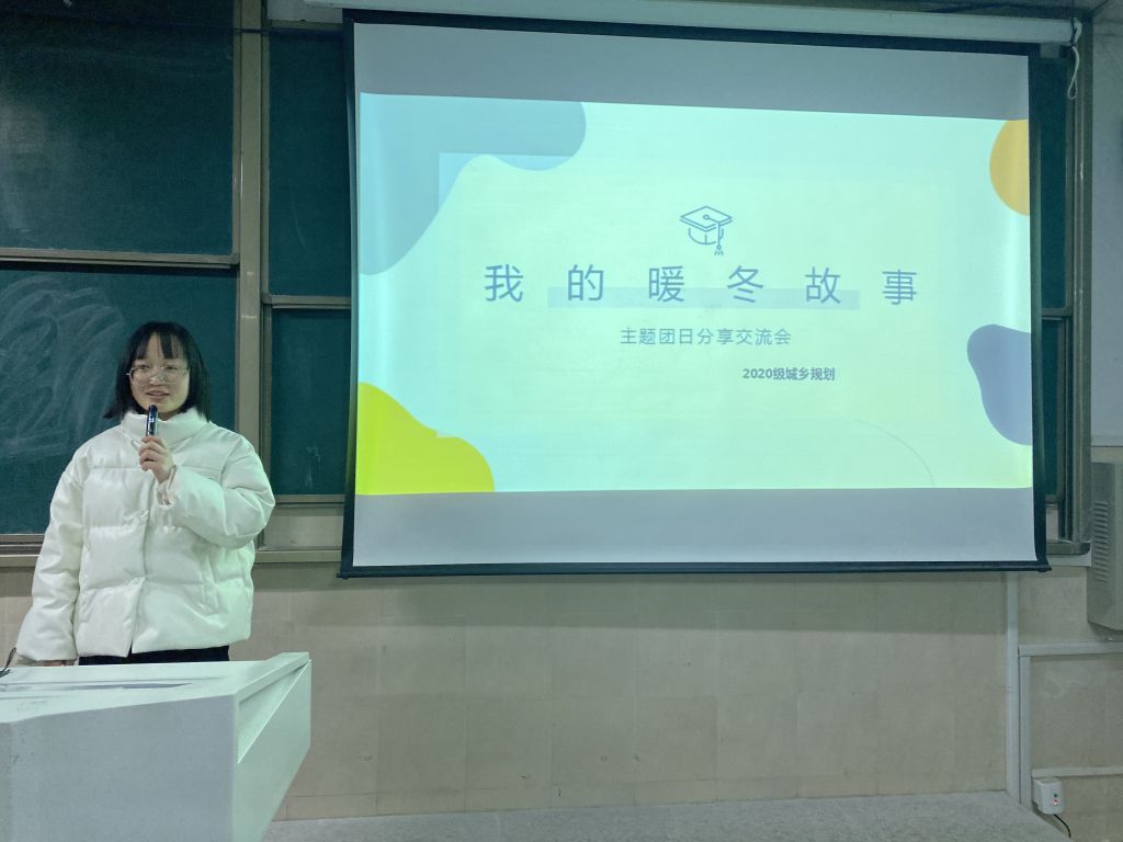 本网讯(地旅学院 刘少杰 耿艺榕)为认真落实习近平总书记关于青年工作的重要思想,引导和帮助广大青年学生上好与现实相结合的“大思政课”,促进广大学生在实践锻炼中受教育、长才干、作贡献,2020级城乡规划专业1班团支部响应落实校、院团委的部署要求,在2022年寒假期间组织支部团员开展了一系列寒假社会实践活动,并于2022年2月21日晚召开“我的暖冬故事会”主题分享会。