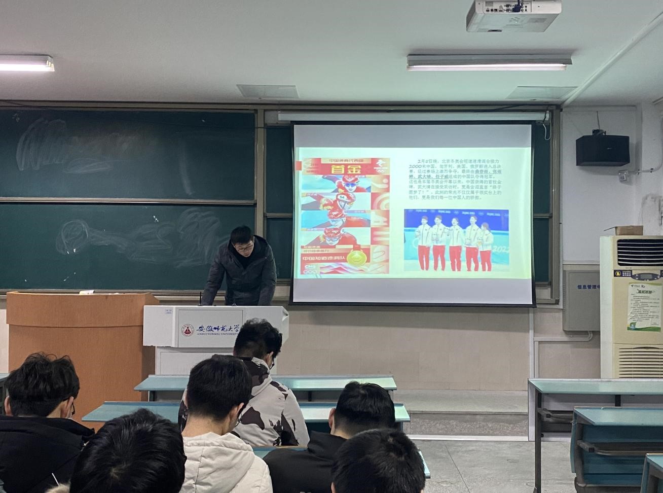 第一团小组组长李冬冬分享了他在寒假期间向家乡中因疫情而无子女陪伴在身边的留守老人宣传疫情防控知识、并帮助他们饲养家畜的故事。他提到,通过此次实践活动,不仅给自己增加了不同的人生经历,更让他体会到家人的重要性。他的分享也让同学们深深感受到疫情形势下如何更好的对独居老人的做好人文关怀是非常值得大家关注关心的问题,在今后我们也要多关注身边的类似的现象,主动对他们伸出援助之手,做一个有温度的人,真正的做到暖人心。第二团小组组长徐君亮分享了他观看冬奥会的感受。他提到,我国短道速滑混合接力获得了冬奥开幕以来我国首金,这份荣光不仅属于奖台上的运动员们,更是每一位中国人的骄傲。徐君亮从中深刻体会到了奥运健儿为了“更高、更快、更强”而不断努力训练,在比赛中绽放自己的光彩,而我们也要在日常生活中严格要求自己、不断超越既定的目标,遇见更好的自己。接下来,其他三个团小组的成员也分别向大家分享了自己的暖冬故事,一个个暖人心的故事丰富了大家的漫长的寒假生活。