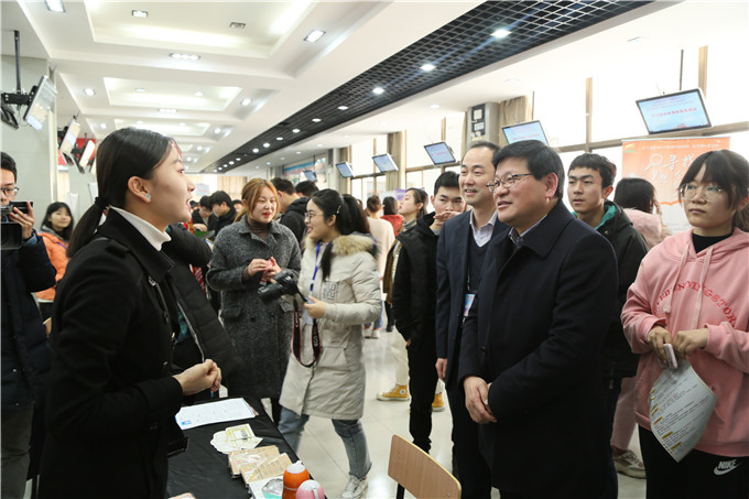 顾家山在观摩招聘会现场时指出,“职旅天下”系列活动在省内已有较大影响力,学校相关部门应积极配合、共同努力,持之以恒地将该活动办好,打造为长三角地区学生就业知名品牌。他还强调了应用型本科专业实践活动的必要性,表示学校应加大支持力度,创新发展举措,不断增强学生对专业的认知、理解与热爱。他以旅游管理和酒店管理专业为例,指出此类应用型本科专业要在现有培养模式基础上充分利用校内资源,注重增强学生的专业能力和综合素质,探索办学模式,总结成功经验,形成教育成果。