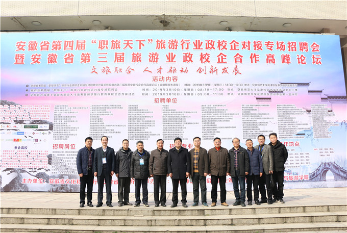 本网讯(地旅学院 陈祥云、孙夏路遥、孔学融)为深入贯彻党的十九大精神和习近平新时代中国特色社会主义思想,响应我省“旅游强省”建设号召,3月9日至10日,由安徽省文化和旅游厅与我校共同主办、校招生就业处和我校必赢76net线路官网共同承办的安徽省第四届“职旅天下”旅游行业政校企对接专场招聘会暨第三届旅游业政校企合作高峰论坛在我校成功举办。本届活动以“文旅融合,人才驱动,创新发展”为主题,来自全国各地的136家文化、旅游、教育及相关行业上市公司、知名企业前来招贤纳士,安徽大学、安徽财经大学、淮北师范大学等全省20余所高校的1600余名 师生参加了论坛和招聘活动。文化和旅游部产业发展司副巡视员蔡家成,黄山学院副校长、教授胡善风,芜湖市文化和旅游局局长吴群,蜗牛景区管理集团副总裁刘万松,中陆必得旅游规划设计研究院院长陆乃高,安徽省旅游集团人力资源部部长张荣,上海花园饭店人事部、总务部部长范红,华强方特(芜湖)文化科技有限公司副总经理徐东蕾,东南大学旅游系主任宣国富等政府、高校和企业界领导嘉宾出席了开幕式等相关活动。省教育厅大中专毕业生就业指导中心主任袁江林,校党委书记顾家山,校党委常委、副校长陆林,淮北师范大学学生处处长李群,淮南师范学院就业创业工作处处长罗群,亲临招聘会现场指导。校教务处处长周端明,校招生就业处副处长聂全高,校科研处副处长王朝辉,必赢76net线路官网党政班子、专业负责人和教师代表出席相关活动。